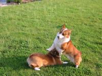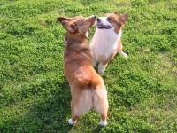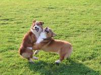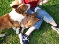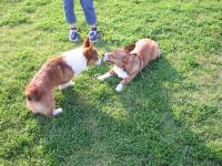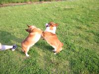 タイムさんになでなでされて休憩中。その後も2匹のバトルは続く・・・