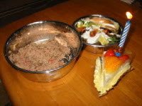 お父さんとお母さんはお祝いにワインを開けて、食後にはケーキまで・・・。アトムご馳走さま〜♪ |
