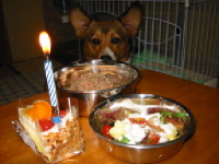 | 朝、僕の大好きな缶詰とおやつが届いた。 | 午後6時半。お父さんが帰ってきて、パーティの始まり始まり〜。 何? 何が始まるの? |