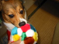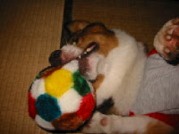 | わかったよ。「は〜い」すればいいんでしょ・・・ | ボール〜っ。うれしいなぁ〜。 新しいボール〜♪ |