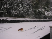 朝起きると、一面の銀世界。げげげ。高速大丈夫か? 出発前にアトムにトイレを・・・と思っていたら、テンションが高まってるアトムは、玄関が開いた隙に大脱走。雪の上を走り回る。・・・ったく。(-_-;) でも、うん@も済まし、気を取り直して病院へ向けてしゅっぱ〜つ!