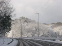 さてさて、今度は旅行へ向けて出発よー! しばし車を走らせ中国道に乗り、最初のSAで私はお昼ごはん。その後、西へ西へ。中国道から米子道へ。いくつかトンネルを抜け、最後の長いトンネルを抜けるとそこはすっかり雪景色〜〜〜〜。どうやら、また雪のある場所に来てしまったようです。(^_^;) そして今日の目的地、湯原温泉へ到着〜♪
