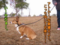 飲むと眠くなる旦那は、とっとと寝てしまい。この後事件は起きました。皆さんもう御存知のマーキング野郎アトム。この日も、部屋の中で何度か片足を上げ、母の怒りをかいました。とりあえずマーキング防止のエプロンを着けているので助かってはいたのですが・・・。あれだけ怒っていたにもかかわらず、またもやテーブルの足にマーキング!! その前から、外の音に反応してバフバフ言ってたのに怒ってた母は激怒!! 追いかけると、部屋の隅に逃げ、牙を剥きました。さらに怒ったのは言うまでもありません。(-_-;) ところが、さ〜大変。怒ったのはいいものの、こっちが寝ようと思ってトイレをさせようと思っても、一向にしない。マーキング防止のエプロンも、大量のシーに耐える訳もないし、困った。このまま家の中でトイレが出来なくなるかも?と不安になりつつ・・・。その内、旦那が起きてきて、アトムと一緒に寝るとか言うしぃ。失敗したら謝ったらいいって・・・。でも結局は、落ち着かないらしく、しばらくするとバリケンの側の隅の方に行くので、バリケンに入れておやすみなさ〜〜い。こうして1日は無事?終わったのでした。