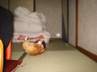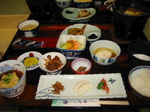 さ〜て、待ちに待った朝食。朝食は大広間なので、アトムは部屋でお留守番。バリケンに入れ部屋を出ると、吠える吠える。こりゃあかん・・・と部屋に入りなんとか諭そうとしたけど、聞く耳もたず。ヤバイなぁ・・・と思いつつ再び部屋を出て行くと、今度は「わぉ〜〜〜〜〜〜〜〜」と遠吠え。(^_^;) アトムの遠吠えを初めて聞きました。(笑) 遠吠えって遠くにいる仲間を呼んでるんだってねぇ。やっぱ仲間?