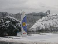 中国道から山陽道へ連絡する岡山道を走り、燃料補給とアトムのお散歩タイムに高梁SAへ寄りました。ここは、わんこにやさしいSA。水飲み場とうん@を捨てるゴミ入れが設置されていました。水飲み場は凍結を防止する為か、防寒してあったのでどんな感じかイマイチわからなかったけど。でもこういう施設がどんどん増えてくれればいいのになぁ〜。
