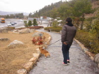 食後に少しのんびりして、身支度を整え(部屋にドライヤーがありませんでした。(泣))少し部屋をコロコロでキレイにし、さて2日目始動です。チェックアウトの10時前に宿を出発! 従業員の方々はとても感じが良く、犬連れでもまったく肩身の狭い思いはしませんでした。総合評価、中。(^_^;) でも、そうは言っても、旦那は次もここでもいいそうです。私は新し物好きなので、次は別な所を希望〜。・・・そう言えば、犬連れの注意事項を何も言われなかったなぁ〜。4,000円は何代?