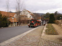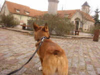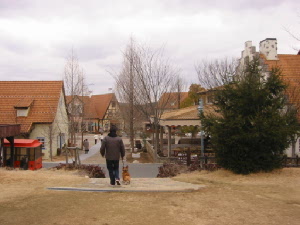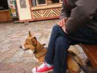 イベントホールには、ドイツ風ビヤホールレストランがありましたが、残念ながらわんこは入れません。広場にテーブルやベンチがあるので、屋台のピザとかは食べられるようです。平日なので、誰もいないし、ピザまではいらないので釜焼きのパンを買って帰る事に。で、私が味見をしてると、横でじっと見つめる犬が一匹・・・。(笑) パンは美味しいかった。帰ってからトーストして食べるともちもちしててより美味しい〜♪