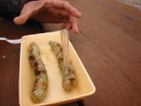園内に入って、ドイツと言えば、ソーセージとビール! とりあえず何か食べようと思い、屋台の所に行くと、しばらくお待ち下さいの看板が・・・。寒空の下、待ちわびる事5分?10分?やっとお店の人が帰ってきました。3月・・・しかも平日と言うことで、従業員さん、少ないのでしょうか?待ってるのが寒かった〜〜〜。でも熱々のソーセージ美味しかった。