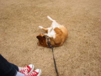 風が出てきて寒くなってきたので、もうそろそろ帰ろうか。最後に広場で少しアトムを遊ばせると、ここでもゴロゴロは欠かしません!(笑)