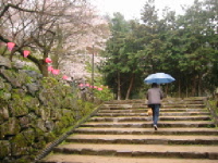 食後は駐車場に少しの間車を置かせてもらって、出石城跡へ桜を見に・・。