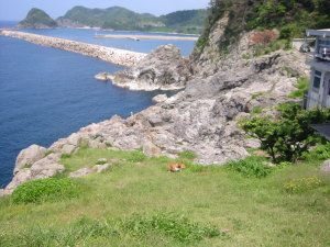 公園からの見晴らしは良くて、この日は気持ちのいい風が吹いてました。断崖絶壁なので、ちょっとヒヤヒヤしながらフリーにしました。だってアトム、慎重なようで大胆で、たまにどんくさかったりするのよね。(^_^;) 春は桜。初夏にはユウスゲと言う花が見られるみたい。まだユウスゲには早かった。