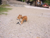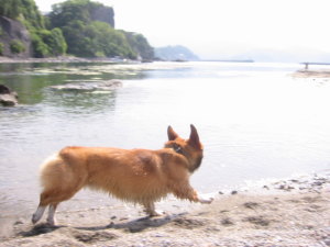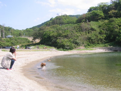 今年初めての海♪ やっぱり水に入る時は恐る恐るのアトム。(^_^;)
