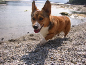 海に浮かんだ木の切れ端を取るのも、なかなか取れない。海の水は塩からいからか?くわえようとしてもすぐに落とす。(笑) でも、帰る頃に少し慣れてきたかな?って感じで、まだまだ水に浸かっていたいアトムでした。果たして、海でも泳げる日が来るのか?