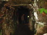 お店の横下には店の名前の由来?の「風穴」。神鍋高原は元々火山で、自然に出来た穴みたい。昔の人はここを貯蔵庫として利用していたらしい。年中8℃くらい。落石とか危ないので立ち入り禁止だったけど、ちょこっと覗いてみた。(^^ゞ まさにひ〜〜んやり。(画像がちと暗い・・・)