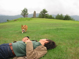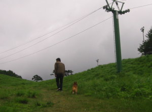 アトム・・・どんどん登って行きます。あっちにフラフラこっちにフラフラ、寄り道しつつも飼い主より足取りも軽やか♪ 草むらの中にもどんどん入って行きます。だから、ダニがつくんじゃーっ!と言っても通用する訳もなく・・・。ピョンピョン飛び跳ねて楽しそう。(笑) 一方、お疲れの旦那は足取り重く、少々遅れ気味。
