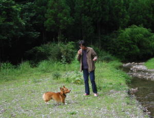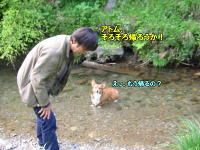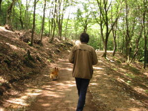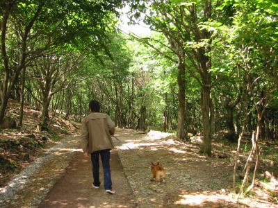 木立の中を散策。1時間くらい歩いたかな・・・。木漏れ日の中、鳥やセミの声を聞きながら涼しくお散歩が出来ました。でも、さすがに1時間歩くとうっすら汗・・・だけど心地よい汗。何かと前へ前へ行くアトムだけど、少し行くと立ち止まって振り返り、こちらの様子を見ながら歩いてくれるようになってきました。写真を撮りながら歩いているので、遅れをとる私。たまには走ってやってきて、まるで「早く!早く!」と言っているみたいでした。(笑) 途中、ベンチがあって休憩してアトムに水を・・・と思ったのに、まだまだ〜と休憩する事もなく、周りをウロウロ。めちゃくちゃ楽しそうでした。