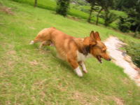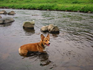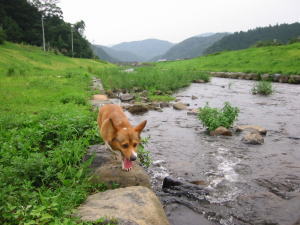 もらいましょう。(笑) ちょっと段差があって、入りたいけど入れなかったアトム。トンボを追いかけドボン! その後は、なかなか上がって来ない。(^_^;) でも、この川、石がごつごつで