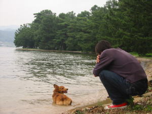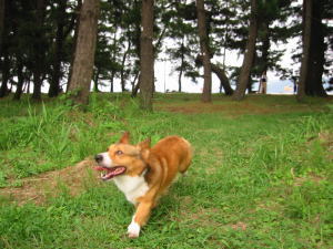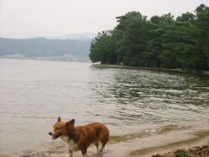 帰りに、名水百選に選ばれている、「磯清水」で喉を潤す。もちろんアトムも!海に囲まれた場所に湧き出ているのに塩分を含んでいない不思議な水。長寿の霊泉らしい。アトムもコーギー界の長寿になれるといいね!水は甘くて美味しかったよん。