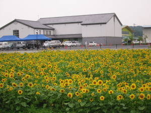 但東町へ続く道の途中、京都府野田川町で「15万本のひまわり畑」に遭遇。丁度、イベント開催中でした。(9日〜17日まで) ゆっくり見てまわる時間がなかったので、少しだけ車を止めてパチリ。駐車場は無料。入場料は100円。