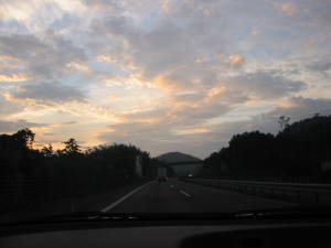 朝5時頃、そろそろ陽が昇りそう。さぁ「宮島SA」を出発。走りだしてしばらくしてウトウト。短時間だったけど熟睡出来たみたい。気がつくと次の「小谷SA」は間近。途中、旦那もヤバかったらしい。(^_^;) またまた「小谷SA」で休憩。そして朝食。こうなったらSA毎に休憩して運転交代だわ。そのうち雨も降り始めて来た。しかし、いつになったら家に辿り着くのだろう・・・。(笑)