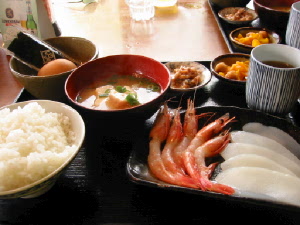 お店では、この時期天然の岩カキが食べられる♪ もうそろそろシーズンも終わり。私も旦那もこの時期のカキは食べた事な〜い。もちろんオーダー! 2つで1,200円はちと高いけどね。(^_^;) 生か蒸しか焼きか選べるのだけど、お店の人の話では「蒸し」が一番好評とか。蒸しでお願いする。出てきたカキはでか〜〜い。食べてみると、美味し〜い! カキはよく海のミルクとか言うけど、まさしくミルク!これだけのカキは初めてかも。濃厚なカキを堪能〜。偶然に味わえた夏の岩カキでした。定食は甘エビと赤いかのお刺身定食。こちらは普通か?(^_^;)