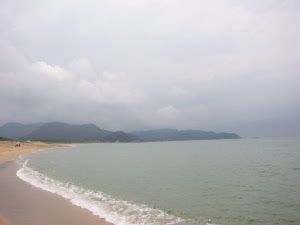 お腹も満たされて、さて何処に行こう〜。お天気がイマイチだけど、やっぱり海かしら〜ん。お店に置いてあった久美浜散策マップを見て、葛野海水浴場に決定。