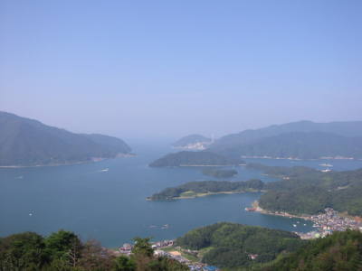 上から見た舞鶴港はリアス式でとてもキレイでしたぁ。あ〜やっぱり海っていいなぁ〜。ここからの景観は「近畿百景」の第1位に選ばれたそうです。