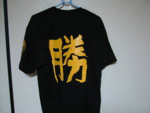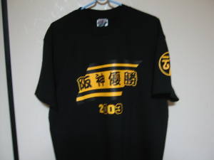 温泉の後、お好み焼きを食べて帰る事に。阪神の優勝にあやかったイベント中で、空クジなしのくじを1枚貰った。「黄色が出たらジュースです。」と言われ、ガラガラっと回すと赤い玉がポロリ。おじさん「カランカラーン」と鐘を鳴らす。なんと景品はTシャツ。阪神ファンじゃやないのにぃー。ジュースの方が良かった〜。(T_T) 今日はツイてた日なのか?ツイてなかった日なのか?(笑)