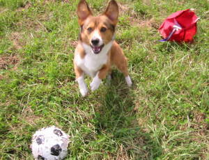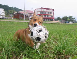 到着して、荷物を下ろすなり、遊ぼう遊ぼうとワンワン。(^_^;) その様子を写真撮ってたら、今度は吠えながらピョンピョン。(笑) ホントにボールが好きなのねぇ〜〜。