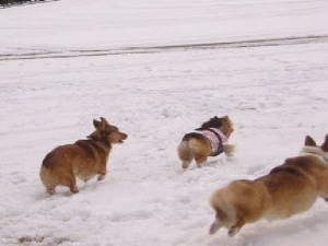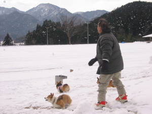 まずは、グラウンドで雪遊び。雪球を投げてもらったり、追いかけっこでわんこ達は走り回ります。ちょっとソリもね〜。アトムはなぜかいつも、この子って決めた子と仲良くしようとする。今日の前半のターゲットはミニーちゃん。ミニーちゃんにラブラブで、ミニーちゃんの後ろにいつもアトムあり。(笑) ミニーちゃんとは何度も会ってるけど、こんなの初めて?