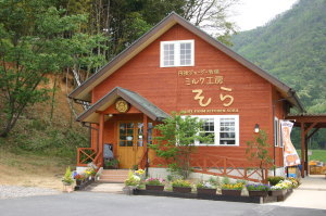 すぐ近くの牧場に、今年の3月に出来たお店「ミルク工房 そら」 ジャージー牛のジェラートやミルク、手作りチーズがありました。私はジェラート、旦那はミルクを。もちろんアトムにも少し。ジェラートの種類はそんなに多くないけど、あっさりしてるけどコクがあってウマウマ〜♪ 隣には牛舎も。