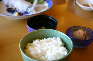 まずは、休暇村竹野海岸でランチ♪ 一応、電話で確認したのにメニューにない。(^_^;) あれれ?お店の人に確認すると、あるとの事。ん?あんまり頼む人いないの? 確か、村おこしで活イカをアピールするとか言ってたのになぁ〜。