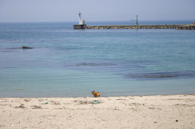 弁天浜に着いて、誰もいないのでアトムのリードをはずすと一目散に海へ。(笑) 今日はいいお天気なので、海もキレ〜♪ でもちょっと暑すぎかも。(^_^;)