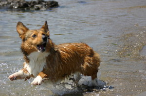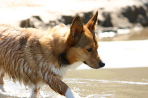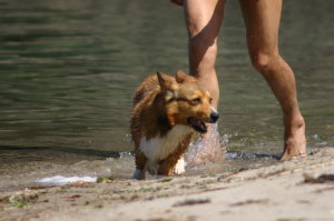 途中、アトムは泳ぎたそうなんだけど、一歩が踏み込めないみたい。仕方ないので、準備していた短パンに履き替え、アトムと一緒に海へ。すると、思った通りついてくる〜。(笑) それからは、少し泳いだり、レトリーブで遊んだり。でも、海の水が辛いからか? 次第に気が進まなくなってきたかな? でも、泳いでいて旋回する時に、お尻をプクッと上げて傾けて回る。その姿がめちゃかわいくて大笑い。尻尾のある犬だと尻尾で舵とるのかな? でも、泳ぐのは川の方がいいみたい〜。ここの砂浜には日陰がないので、次第に人間がヘロヘロに。一旦、車のある場所に引き上げました。
