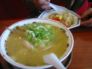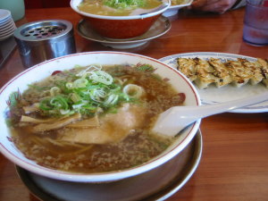 まずは、腹ごしらえ。旦那はチャーハン定食をちょっとこってりで。私はラーメンのあっさりと餃子。まずは、スープを一口。確かに、後味が生臭いかも・・・。でも、餃子食べたりしてたらそのうちわからなくなってきた。(笑) 旦那も最初は?だったけど、途中でテーブルに置いてあった辛い味噌みたいなのを入れたら、気に入ったようで、スープまで完食。元々とんこつで育った男は、特に生臭さは気にならない模様。私の感想は、食べるなら潔くこってりの方がいいのかも・・・。