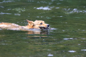 ここも、先日よりは水量も多いし、流れも速いけど、山南町の川みたいににごってなかったし、アトムも流れに乗ってスイスイ泳いで今日も枝をレトリーブ。(笑) でも、時間はすでに4時を回ってるし、ちょっとだけの水遊びにして早めに切り上げた。30分もいないのに、1時間かけてやってくるなんて・・・親ばかにもほどがある。(爆)
