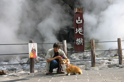 まずは「山地獄」。あちこちから湯煙が吹き上げ、ん〜これぞ別府。ここにはなぜかフラミンゴやラマやアフリカゾウなどの動物が。(^^ゞ