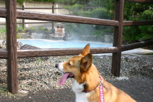 一旦、車に戻り、みんな水分補給。暑い〜〜っ。日陰でアトムに水を飲ませ、さて次は「海地獄」へ・・・と思ったのに、アトムは踏ん張って日陰から動こうとしない。仕方ないので、アトムは旦那に任せ私だけ「海地獄」へ。(笑)