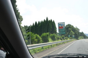 最初の予定では、この後高速を途中下車して江戸時代に天領として栄えた「日田」に寄り道するつもりだったのだけど、義理の母が風邪で調子が悪いらしくそのまま鹿児島に行く事に。「別府SA」で私の実家や鹿児島へのお土産を購入して、今度は私の運転で「山田SA」まで。そして、運転を交代して次の休憩場所「北熊本SA」を目指します。ここで今日は昼食。その後、アトムのお散歩と恒例になったスイカ〜♪ そしてこの旅行3回目の給油。今回の燃費は12.25km。少し延びた?でもまだ満足しない旦那。(笑)
