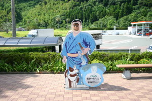 九州道最後のSA。「桜島SA」に無事到着。後の運転は旦那にお任せ。SAでこんなものを発見。どちらかと言うとこういうものには一切かかわらないタイプ。でも無理やりにやってもらった。これはきっと貴重な一枚だ。(笑)