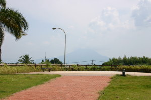 少し走っていつもの「桜島SA」へ。ここで毎回写真を撮ります。アトム、覚えてるかなぁ〜? 今日は桜島が霞んで良く見えないなぁ・・・。
