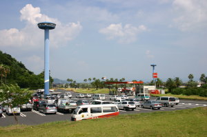 そして実家へ。今回もお土産をどっさり。お義父さんの作った野菜、わざわざ買ったくれたさつまいも3袋、缶のジュースとお茶を箱ごと、焼酎、その他モロモロ。車が大きくなったので、ラゲッジだけで余裕で入った。去年まではアトムの乗ってる後部座席にも詰め込んで、アトムを降ろすたびに荷物を先に降ろしてたもんなぁ〜。ますますNEWアトム号の評価はUP。(笑) しばらく休憩して、さていよいよ兵庫に向けて出発!! その前に、給油。(^^ゞ 今回の燃費8.76km。市内走ったり、高原へ行くのに登ったもんなぁ。ま、しゃ〜ないか。