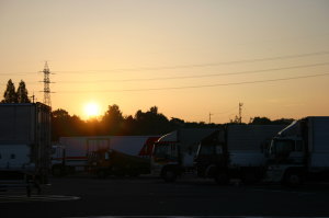 「吉備SA」で日の出。旦那は朝ごはん。運転交代。