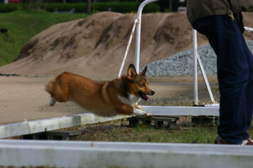 アトムにとっては、ハードルを飛ぶ事自体は別に楽しい事でもなんでもなくて、前にあって邪魔だから飛ぶって感じかな。(笑) こっちの指示に従うなんて事はない。これを教えるのは大変かもな〜。