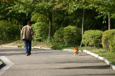 この公園には、陸上競技の出来るグランドがあって、その周りをウォーキングの人が結構歩いていたりする。帰る前にくるっと一周お散歩。