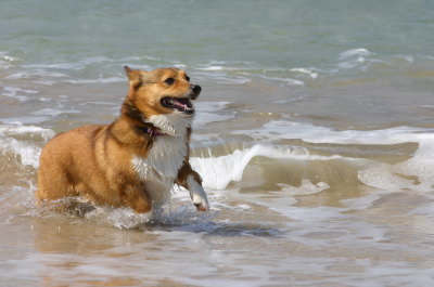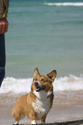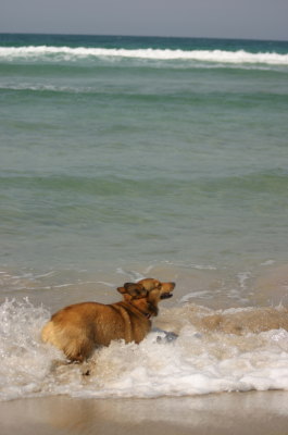 着いた場所は恐らく?「八丁浜海岸」。今日は風が強くて少し波も高かったけど、アトムは全く波を恐がらないし、すっかり海好き♪ でも、自分から泳ぐ事はなかったなぁ。やはり海で泳ぐにはレトリーブするものが必要みたい。駐車場も綺麗に整備されていて、トイレも綺麗。砂浜に沿って遊歩道もあったり、砂も綺麗でとても気持ちのいい所でした。