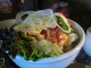 旦那は意地で?パスタを完食してたけど、サラダは上の部分を食べただけでギブ。(^_^;) 最初に無条件に取り皿が出された意味がわかった。(笑) このお店は、みんなでワケワケして食べるのがいいみたい〜。隣の席の人、パスタと他に1品頼んで2人で分けて食べてたわ・・・。ちなみにカルボナーラは850円。