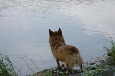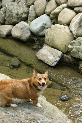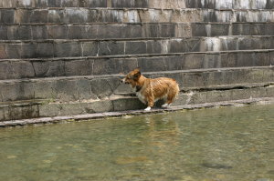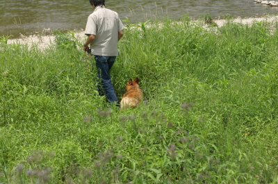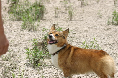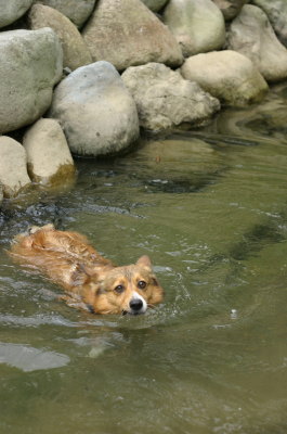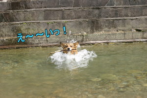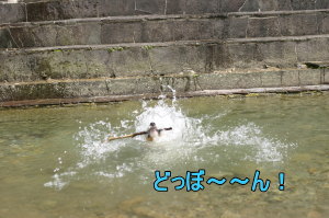 そしてその後、時間もまだ早いので、加美町の道の駅まで行ってみる事に。この加美の道の駅の裏に水遊び出来る場所があるのよね〜。ここにくるのは久々。やっぱりここの水は綺麗♪ 子供達も遊んでる。誰もいない場所でまたもや水遊び。あまり水は多くないけど、アトムサイズにはぴったり。ここではレトリーブして遊ぶ。何度も水遊びをしていると、知恵もついてきて、向こう岸をキックしてタ〜ンなんてしてみたり。一度階段の上にあがって、そこから恐る恐るジャーンプしてみたり。恐る恐る・・・ってのも見てると笑える。しばらく遊んで道の駅でお買い物して(ここは野菜がもうなかった・・・)お終い。