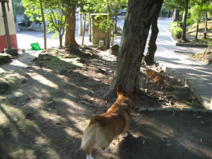 都会は野良猫が多いのか? あちこちに猫がいました。→の後、猫を追いかけダッシュ。(苦笑) でも呼んだらすぐに追いかけるのを止めました。あまり猫には興味がないアトムでも、走られると追いかけたくなるみたい〜。