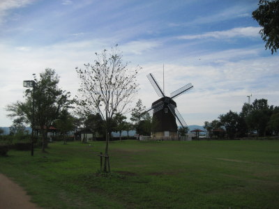 そして、行きに寄った道の駅「藤樹の里 あどがわ」へ。家のご飯を時々玄米にしようと思っていたので、玄米(7分つき)や、今日の晩御飯の為の鯖寿司などなどを買って、もう一つの道の駅「しんあさひ風車村」にも寄って見る事に。しか〜し、ショボ。(爆) 園内はペット禁止で、中に有料のドッグランがあるのだけど、予想通り誰もいない。(^_^;) 速攻で後にしました・・・。(苦笑)